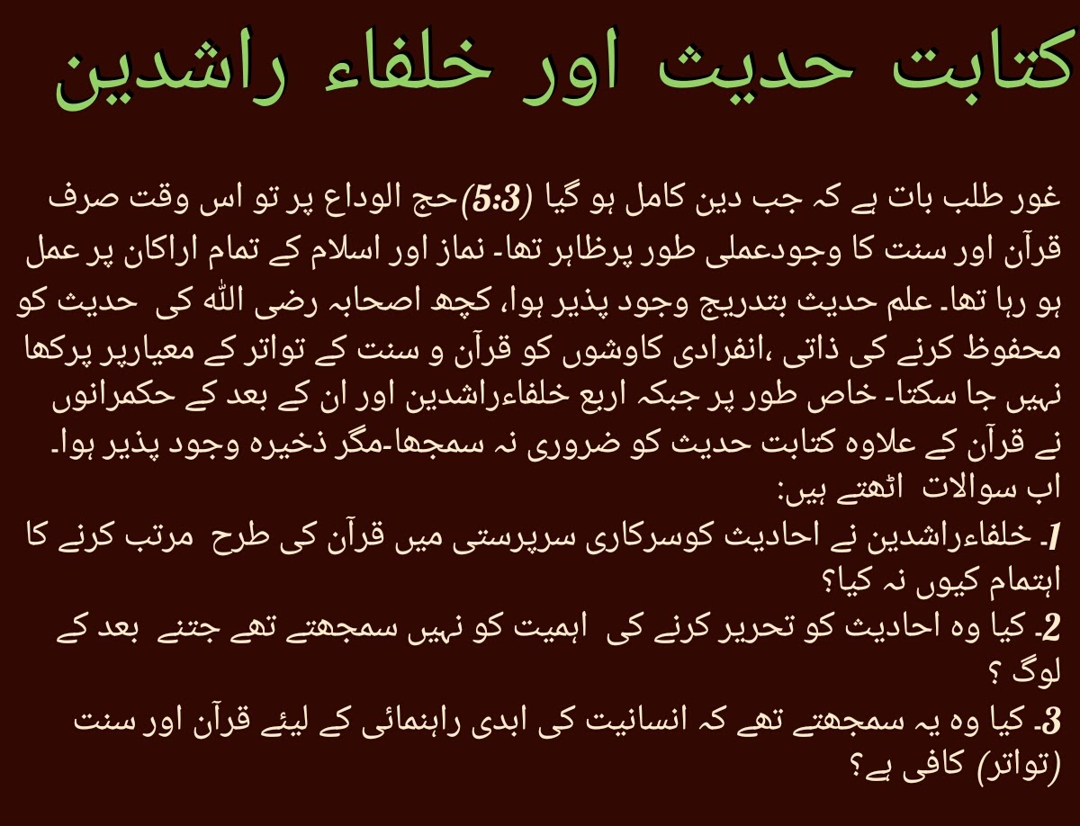 - خلفاء راشدین نے کتابت حدیث کیوں نہ کی؟